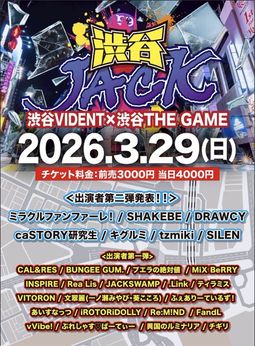 2026/3/29(日)に開催いたします、渋谷JACK 出演についての詳細をお知らせいたします。
