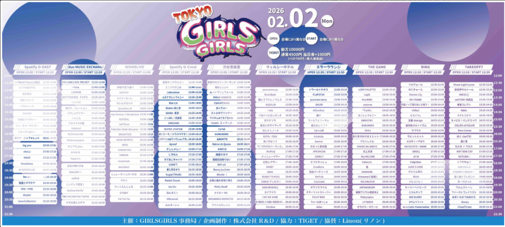 2026/2/2(月)に開催いたします、TOKYO GIRLS GIRLS 出演についての詳細をお知らせいたします。