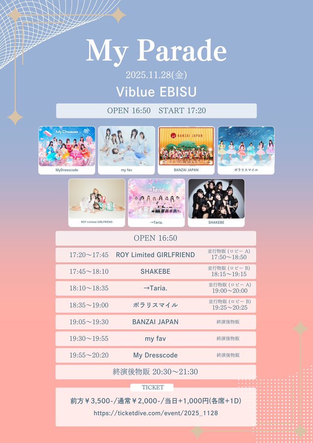 2025/11/28(金)に開催いたします、My Parade出演についての詳細をお知らせいたします。