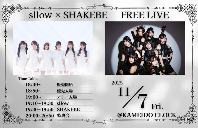 2025/11/7(金)に開催いたします、sllow × SHAKEBEによるFREE LIVE開催についての詳細をお知らせいたします。
