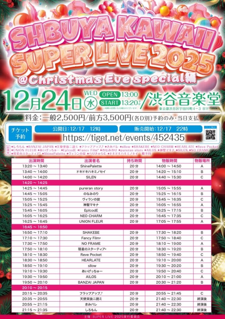 2025/12/24(水)に開催いたします、SHIBUYA KAWAII SUPER LIVE 2025出演についての詳細をお知らせいたします。