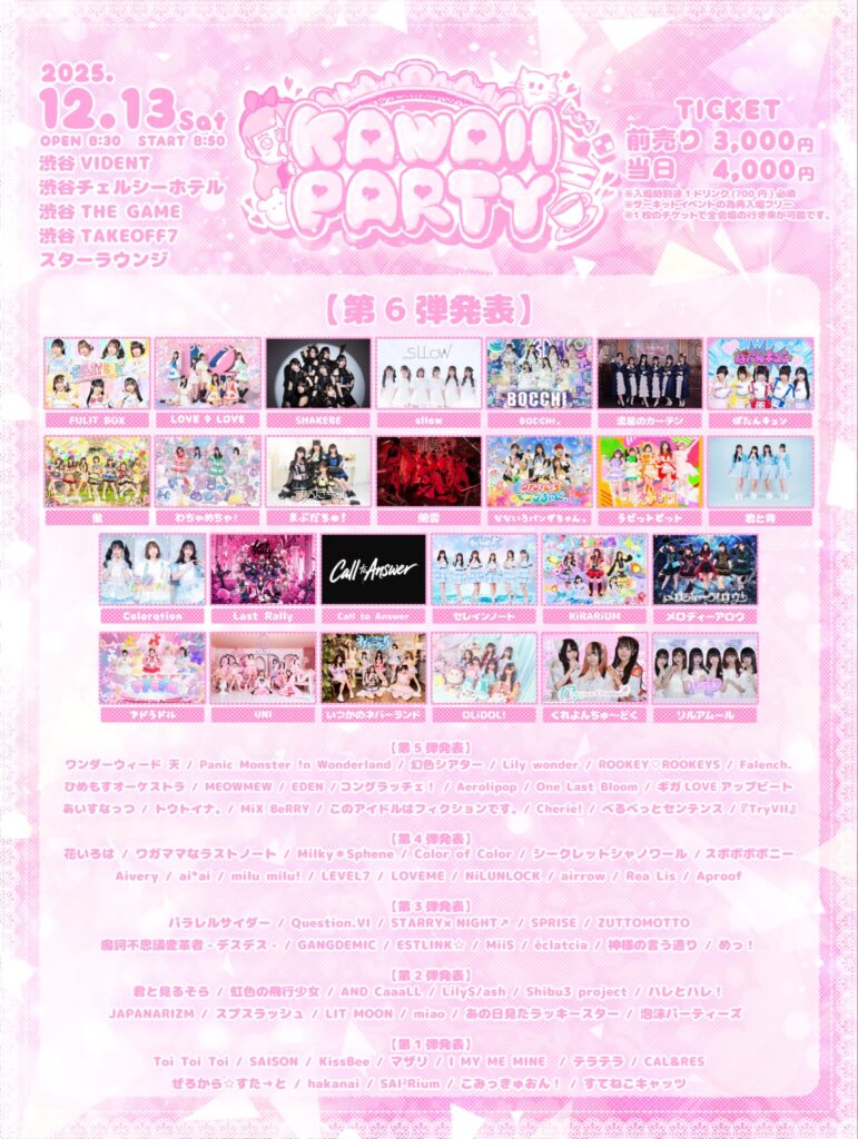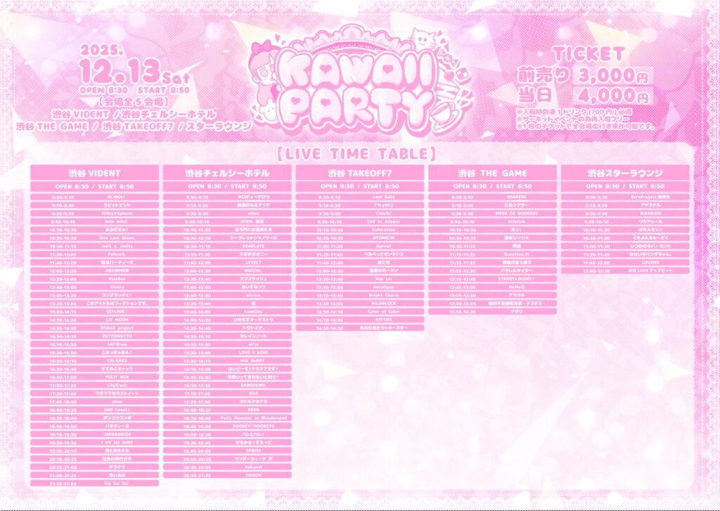 2025/12/13(土)に開催いたします、KAWAII PARTY CIRCUIT!!出演についての詳細をお知らせいたします。