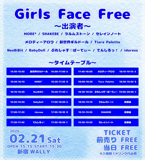 2026/2/21(土)に開催いたします、 Girls Face Free出演についての詳細をお知らせいたします。