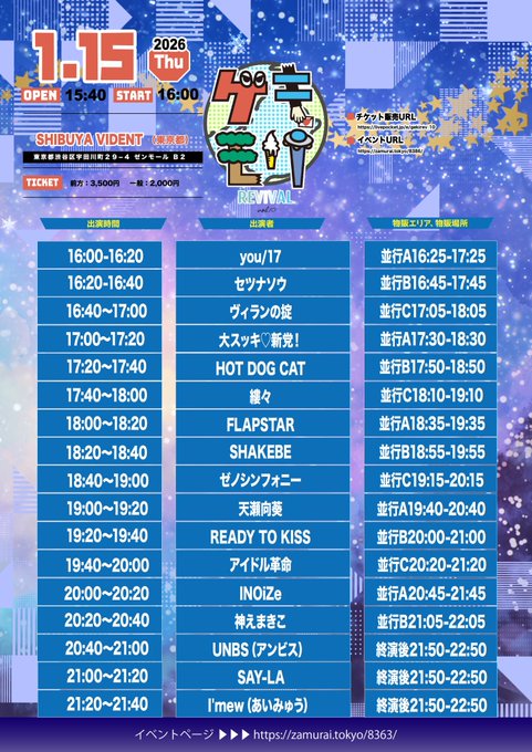 2026/1/15(木)に開催いたします、ゲキモリ!-REVIVAL- Vol.10出演についての詳細をお知らせいたします。