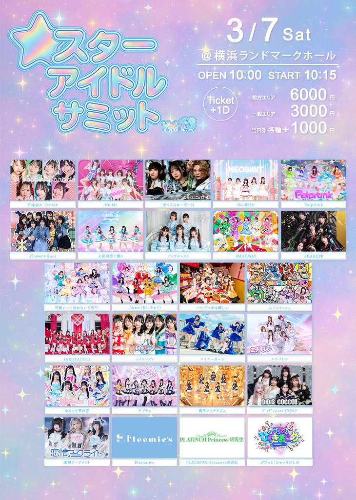 2026/3/7(土)に開催いたします、スターアイドルサミット vol.13 出演についての詳細をお知らせいたします。