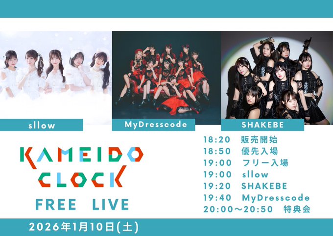 2026/1/10(土) MyDresscode・SHAKEBE・sllow 合同フリーライブ