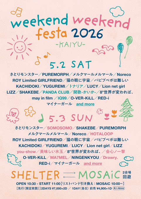 2026/5/2(土)、2026/5/3(日)に開催いたします、『weekend weekend festa 2026』 ~KAIYU~についての詳細をお知らせいたします。