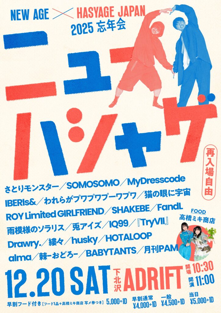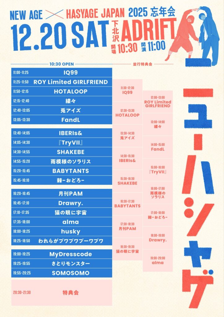 2025/12/20(土) ニューハシャゲ 『NEW AGE + HASYAGE JAPAN 2025 忘年会』出演についてのお知らせ