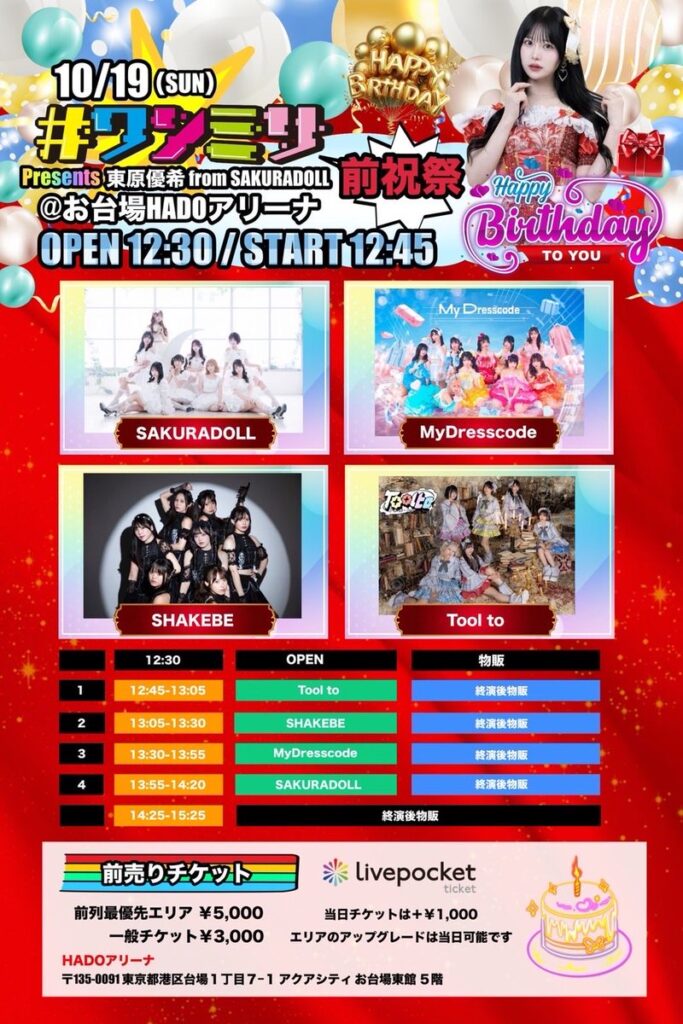 2025/10/19(日)に開催いたします、ワンミリPresents東原優希 from SAKURADOLL 生誕前祝祭出演についての詳細をお知らせいたします。