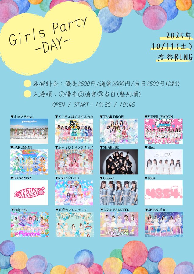 2025/10/11(土)に開催いたします、ワGirls Party -DAY-出演についての詳細をお知らせいたします。